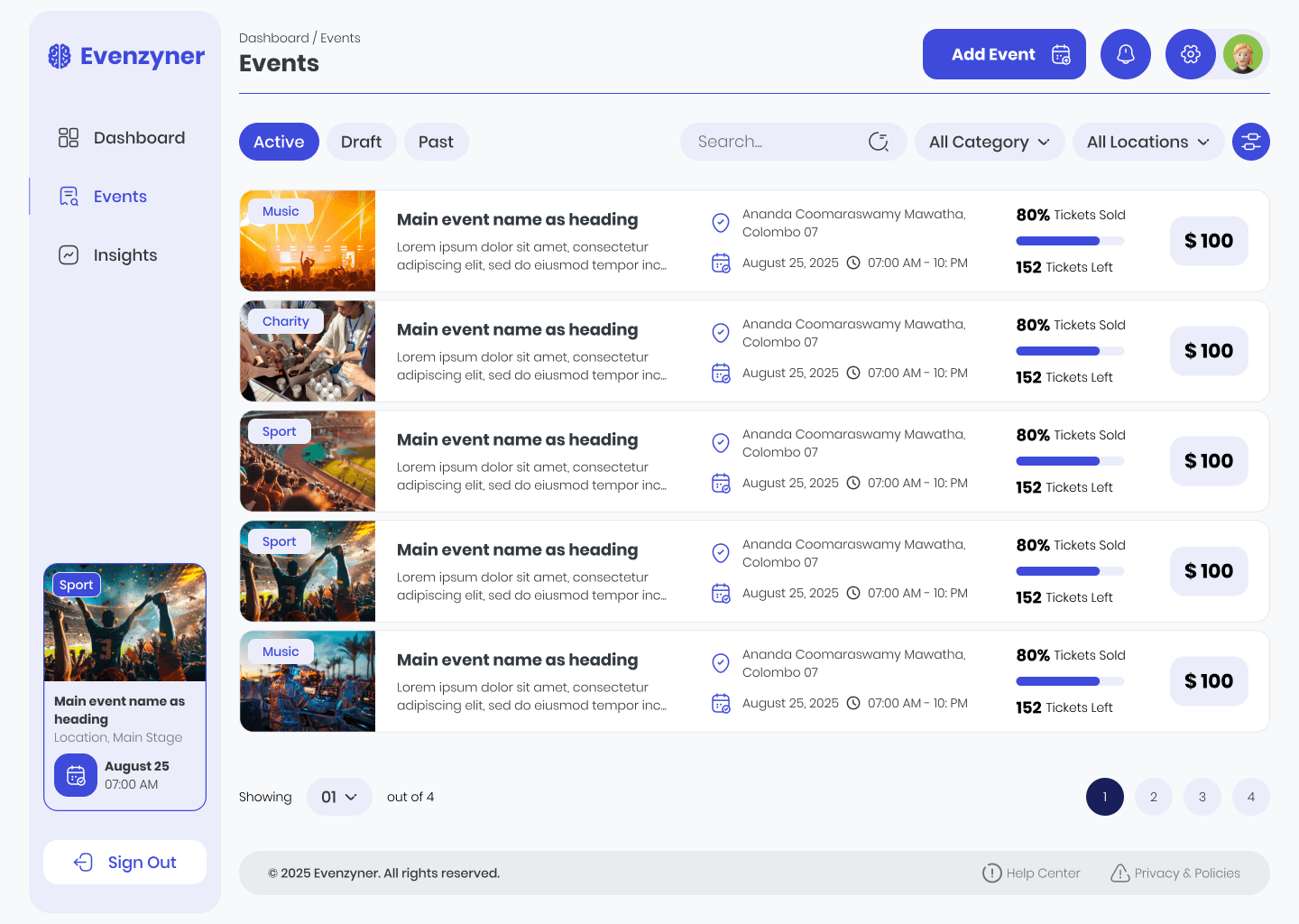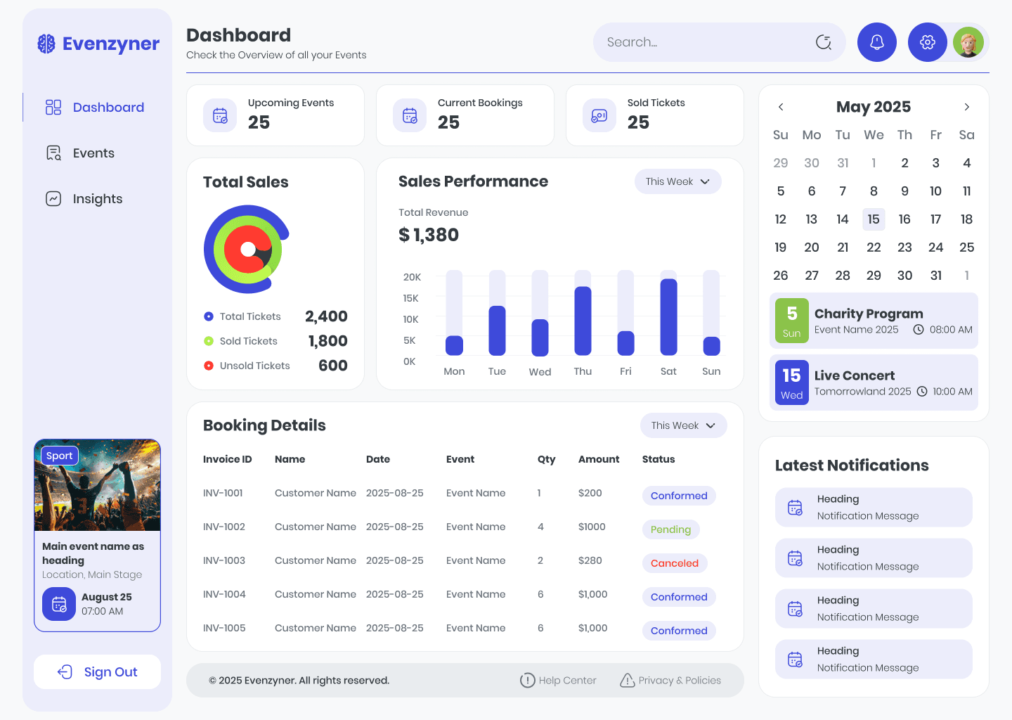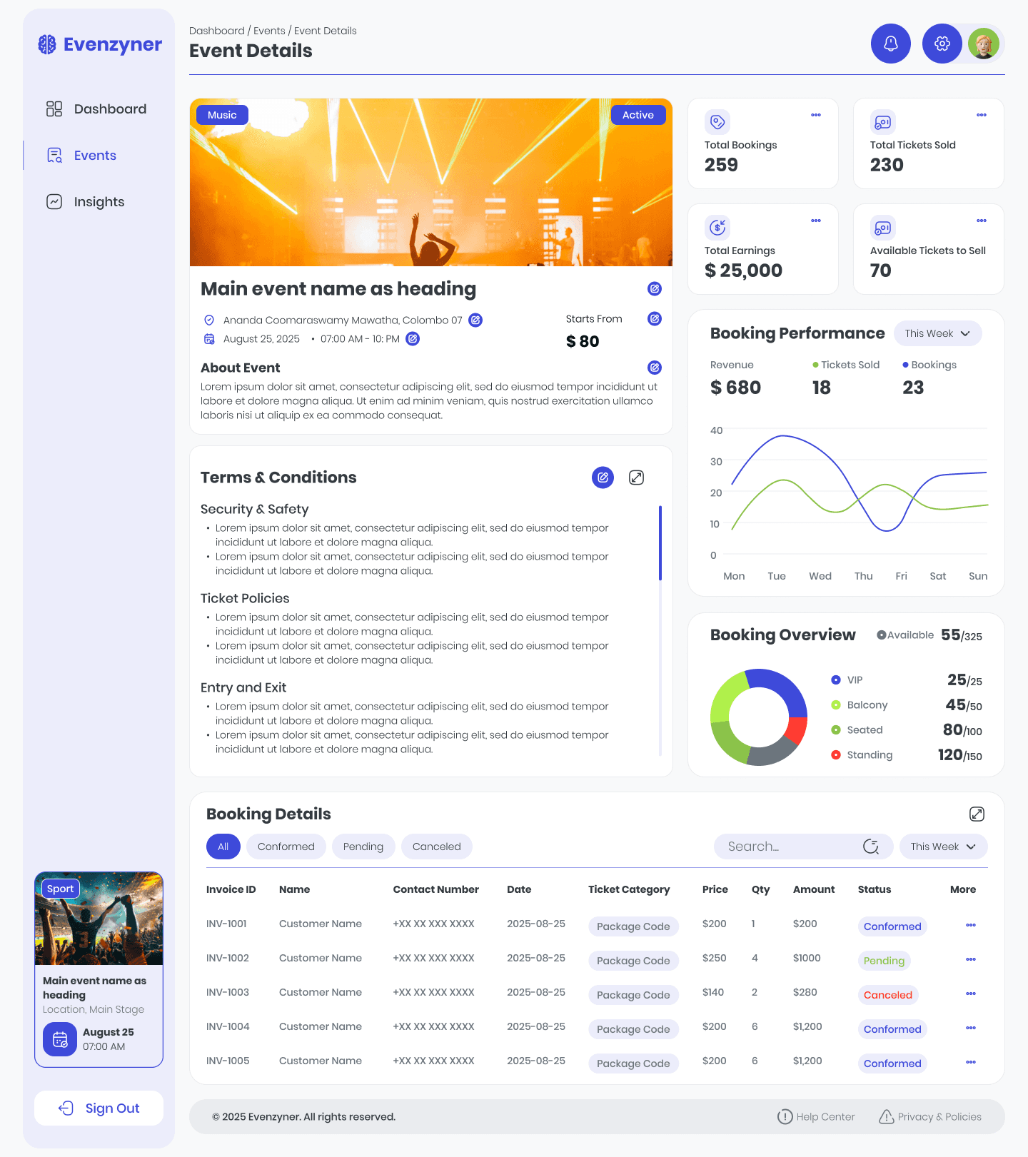 Eventzyner — Web Dashboard for Event Booking & Management.